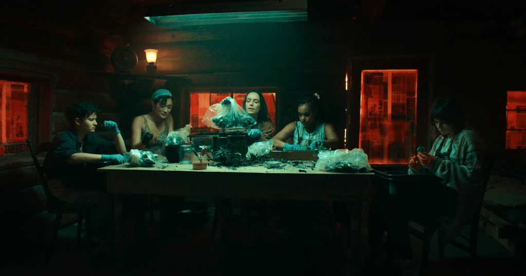 Trim Season follows a young woman down on her luck and in desperate need of fast cash. When she learns of a job making a healthy amount of cash working for a couple of weeks as a marijuana trimmer, she reluctantly agrees to take the job. Along with her friend and a few other trimmers, the group travels to a remote area known as the “emerald triangle.” Once they arrive, the group quickly realizes the land and the woman who runs the farm are harboring dark secrets.