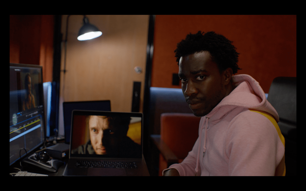 The performances in Do Not Watch are somewhat mixed, but there are some incredibly strong standouts. Ezekiel Ajeigbe (Outer Banks) stars as the editor on the post-production team, Casey. Casey is a grounding character, being one of the more rational voices while also acting as the bridge between the events of all three timelines. Ajeigbe is great at making Casey the voice of reason throughout the film, helping the audience make sense of the horrors even if Casey himself doesn’t understand. Alix Angelis (The Cleasning Hour, The Magnificent Seven) plays the documentary director. At first, Angelis seems a bit stiff as she films her first interviews in the investigation. When she goes deeper into the mystery, Angelis’s performance really takes off and takes the audience on a journey into her obsession. While in a smaller role, another standout performance comes from Sam Boxleitner (American Horror Story, When Vows Break) as sound editor, David Jenks. Boxleitner at first portrays Jenks as a goofy, fun-loving kind of guy. Later on, Boxleitner conveys such a physical and emotional transformation for this character that he’s almost unrecognizable. Every character experiences a shift at some point as they get closer to the truth, and in most cases that is when the performances get really good.