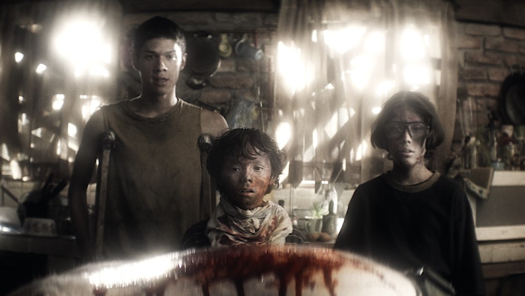 One of the best aspects of Parvulos is the dynamics between the three boys. All three are quite young, the oldest just being a teenager. The brothers live alone in a house tucked away in the wilderness where they can stay safe from the infected, as well as from other humans with bad intentions. The connection these boys have, while also still having the typical sibling rivalry and fights, adds great emotional depth to the film. It’s impossible not to care about these kids and root for them to not just survive, but to thrive in a post-apocalyptic world.