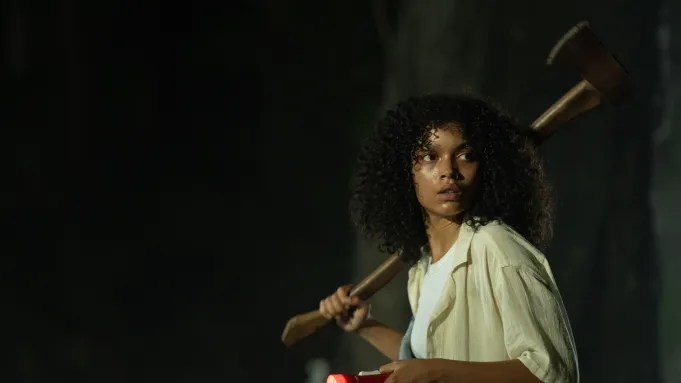 Eye for an Eye has a fantastic cast of familiar faces. Whitney Peak (Hocus Pocus 2, Chilling Adventures of Sabrina) stars as Anna. From the moment Anna appears on screen, it’s clear she’s a good person just trying to find her footing in the new life she’s been thrust into. Peak certainly has a star quality, making the character sympathetic even in her worst moments. Finn Bennett (True Detective, Warfare) gives a truly disturbing performance as local swamp rat, Shawn. Most familiar with Bennett’s work know him for playing kind, helpful, strong characters. For this role, Bennett does a complete 180, making Shawn a truly vile character audiences will love to hate. Other standout performances come from S. Epatha Merkerson (Law & Order) as Grandma May, Golda Rosheuvel (Bridgerton) as Aunt Patti, and Laken Giles (All the Weekend’s Drama) as teenager Julie.
