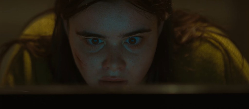 The performances throughout Faces of Death are incredibly well done. Barbie Ferreira (Euphoria, House of Spoils) stars as the content moderator, Margot. Ferreira makes it immediately apparent that Margot takes great pride in the work she’s doing, believing she’s making a difference in the world by removing any bad video content. We learn much of this is due to a traumatic incident from her past that was caught on video and shared online. It explains why she becomes obsessed with the killer’s videos. Ferreira shows Margot going from hard-working employee to a dedicated, and sometimes manic, investigator determined to solve the mystery of these strange videos she’s found. It’s a wonderfully layered performance that really allows Ferreira to show her range. Dacre Montgomery (Stranger Things, Power Rangers) plays the killer recreating scenes from the original Faces of Death. This is a truly disturbing, complex performance from Montgomery unlike anything he’s done before. He’s able to convey both the killer’s ability to be extremely calculated, planning every last detail from kidnapping his victims to orchestrating the elaborate kills themselves, while also showing the strange quirks and cracks in this man’s psyche. It’s a truly horrifying performance audiences won’t soon forget.